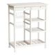 トップのタイルは耐熱性に優れ、熱い鍋や調理器具も直接置くことができます。2つの引き出し、取り外し可能なワイヤーバスケット、3段のオープンシェルフで収納力も抜群。キャスター付きなので移動も簡単。