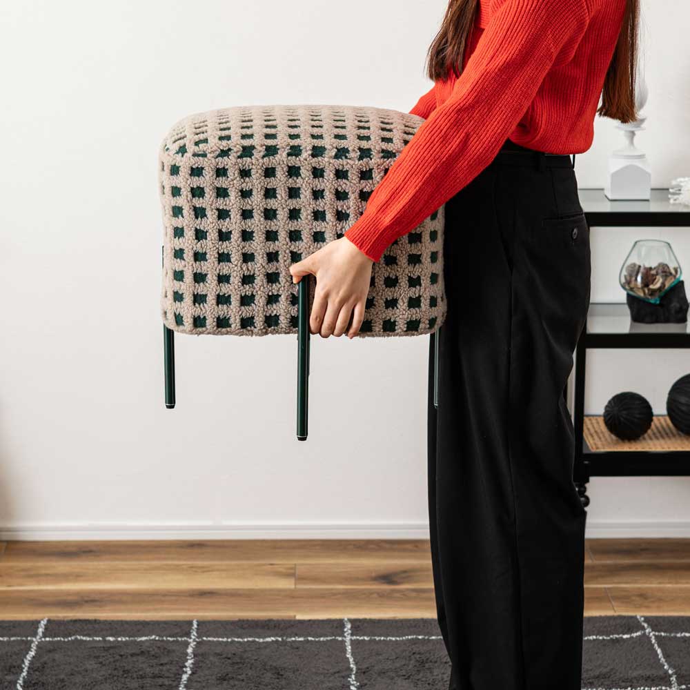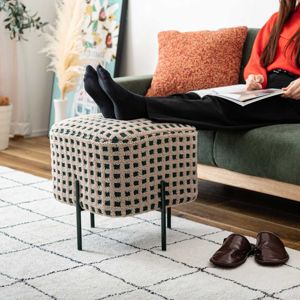 ポコポコとした立体感のあるボア素材が特徴的なチェック柄スツール。