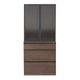 ブロンズ色のモールガラスとアルミフレームの組み合わせが上品に輝くキャビネット。木目の温かみと金属のクールさが絶妙に調和し、空間にモダンな高級感を添えます。